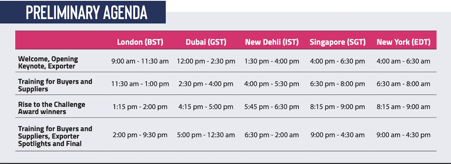 International Day is a 12-hour global virtual event designed to match suppliers with buyers from all over the world. It is truly a one-of-kind opportunity to broaden your network and learn from global experts.